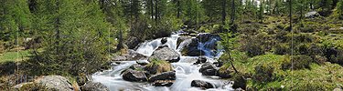 P007645d: Panoramafoto Gestufter Bergbach in Naturlandschaft
