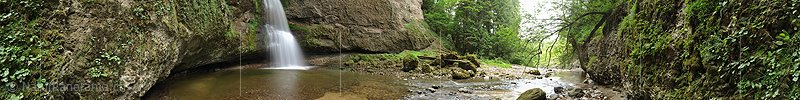 P010218b: Panoramabild Feiner Wasserfall in idyllischer Umgebung (Langzeitbelichtung)