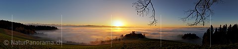 P010916b: Panorama Abendstimmung mit Nebelmeer und feinen Farbabstufungen