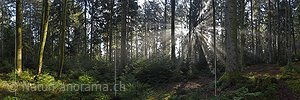 P017357a: Panoramafoto Lichtstrahlen im Wald