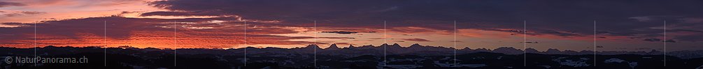 P017394a: Panoramafoto Morgenstimmung mit glühenden Wolken über Alpenpanorama