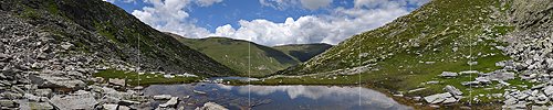 P018307a: Panoramafoto Bergsee in grüner Berglandschaft (Saflischtal)