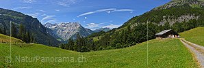 P020014a: Panoramafoto Berglandschaft mit Alphütte im Haslital