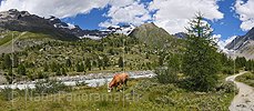 P020347a: Panoramafoto Kuh auf Alpweide im Lötschental