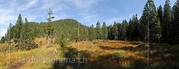P010680a: Panoramafoto Bergwald in Moorlandschaft